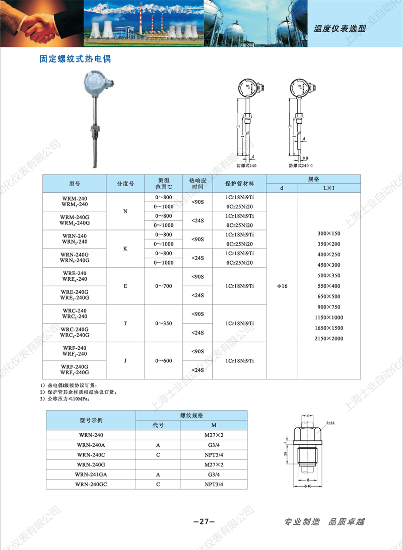 防腐型防爆熱電偶