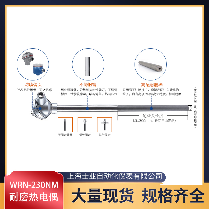 采用特種耐熱和耐磨合金材料作為測溫外保護管兼耐磨頭,內裝鎧裝芯體,既能具有較高的對粉煤灰顆粒沖刷的耐蝕性能,能長期在0~1200℃之間進行溫度測量,是冶金行業運用于高溫、耐磨環境中十分理想的溫度傳感器。